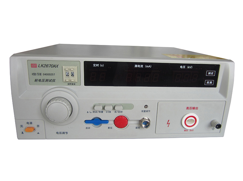 本產(chǎn)品是按照我國(guó)GB4706.1、IEC 60335的有關(guān)規(guī)定安全標(biāo)準(zhǔn)進(jìn)行設(shè)計(jì)。符合CCC、UL、VDE、CSA、JIS試驗(yàn)標(biāo)準(zhǔn),適合電線電纜、各種家用電器、工業(yè)電器、電工、化工、醫(yī)療儀器儀表,以及電子產(chǎn)品整機(jī)進(jìn)行安全耐壓測(cè)試的理想儀器設(shè)備。 采用先進(jìn)的數(shù)字電路技術(shù),能自動(dòng)控制輸出電壓的發(fā)生和停止。當(dāng)測(cè)試過程中被測(cè)物品的漏電流超過設(shè)定值時(shí),能夠自動(dòng)切斷輸出電壓,同時(shí)發(fā)出聲光報(bào)警,并指示出漏電流值的大小。需要定時(shí)測(cè)試時(shí),只要預(yù)先設(shè)置合適的測(cè)試時(shí)間,啟動(dòng)高壓后會(huì)在規(guī)定時(shí)間內(nèi)自動(dòng)切斷輸出,實(shí)現(xiàn)定時(shí)測(cè)試。該儀器的測(cè)試電壓、漏電流、測(cè)試時(shí)間均為數(shù)字顯示,可以直觀、準(zhǔn)確、快速、可靠地測(cè)量被測(cè)物品的擊穿電壓和漏電流值。